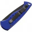 3.38" (8.59cm) closed. 2.5" (6.35cm) black 154CM stainless blade. Blue anodized aluminum handle. Lanyard hole. Pocket clip. Boxed.