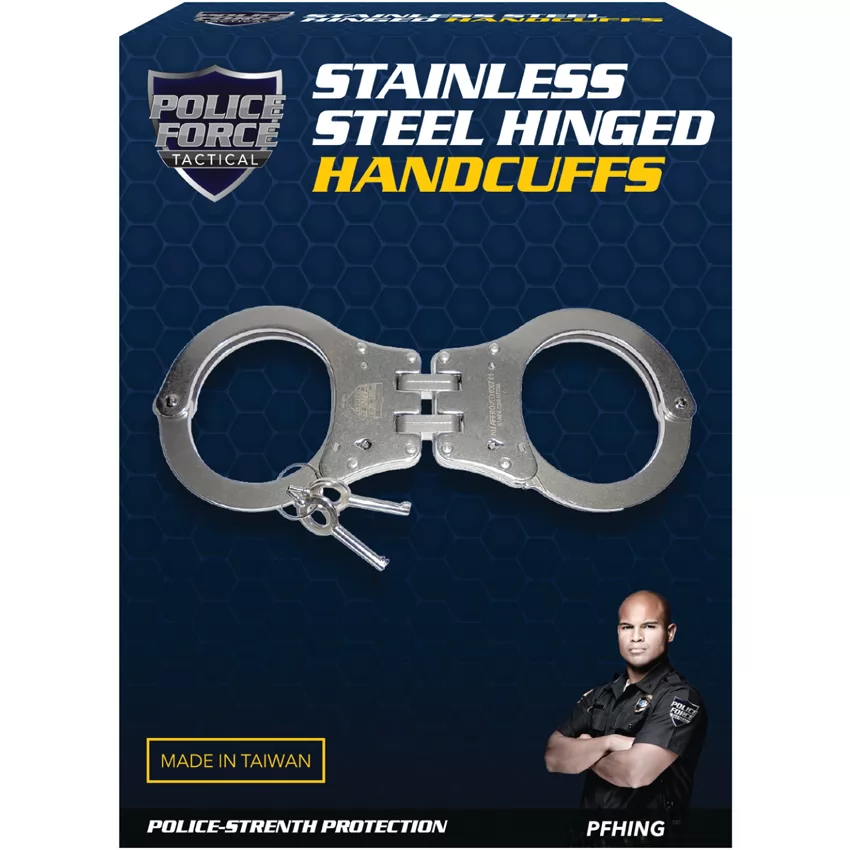 Police Force Tactical CEPFHING Item Description:The Police Force Tactical BRK-CEPFHING handcuffs offer superior restraint with their durable stainless steel construction and hinged design. Built for professional use, these NIJ-certified cuffs provide enhanced security and control, minimizing subject movement during apprehension and transport. The precision engineering and smooth ratcheting mechanism ensure reliable performance and ease of application, while the reinforced hinge adds an extra layer of resistance against tampering and escape attempts. Rely on the BRK-CEPFHING handcuffs for a dependable and effective tool in critical situations.