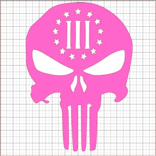 $2.99Vinyl Decals vinyl_punisher_III_percent_decal_4_pink Item Description:Back during the revolutionary war, when the USA was busy ridding themselves of British colonial rule, ordinary countrymen rose up as a militia and fought for their independence. History would have you believe that the entire country was in a battle against the British. This is not what happened at all. As a matter of fact the majority of the people either supported independence, supported British colonial rule, or simply did not care either way. A very small group of people did the actual fighting. These people included the signers of the Declaration of Independence and the armed militia that followed them. This group is known as the three percenters, and they still exist to this day through their family heritage and hereditary resolve for indepence from oppressive government control. Nothing puts this on prouder display that this vinyl decal that features the three percenter emblem sitting on punisher skull. This vinyl decal is pink and measures 4x4 inches.
