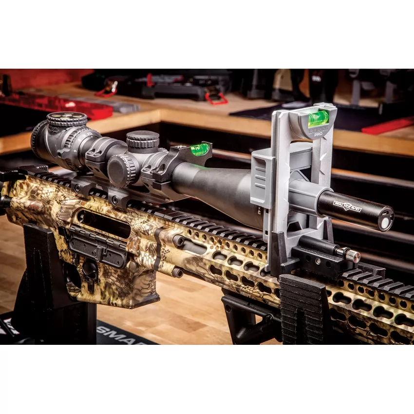 Includes: Precision alignment grid; Leveling device; Reticle light; Picatinny rail mount; Standard barrel mount; Adjustable tripod. Accurate scope mounting made easy. Boxed with hanging tab.