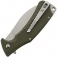 4.63" (11.76cm) closed. 3.5" (8.89cm) stonewash finish 14C28N stainless blade. OD green G10 handle. Extended tang. Lanyard hole. Pocket clip. Nessmuk style blade. Boxed.