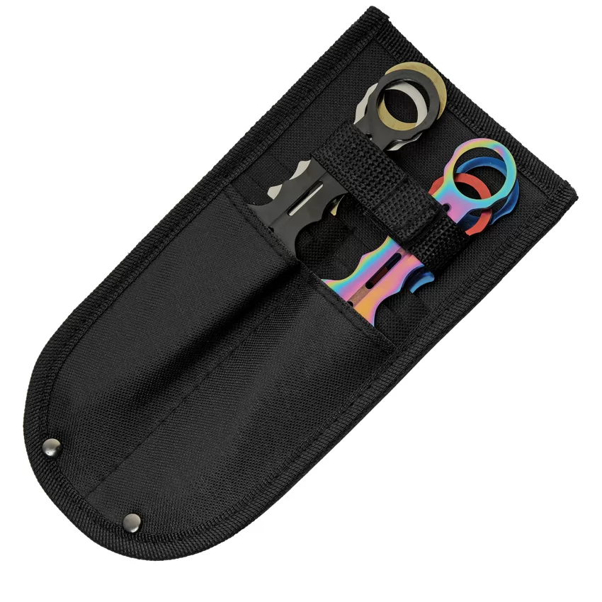 $25.95$17.31Rite Edge CN211555 Item Description:The Rite Edge BRK-CN211555 6pc Multicolor Throwing Knife set delivers performance and style for both novice and expert throwers. Each knife features a balanced design, durable stainless steel construction, and a vibrant, eye-catching multi-color finish. This set provides hours of throwing fun and comes complete with a convenient nylon sheath for safe storage and transport, making it the ideal addition to your throwing collection or a great way to learn the art.