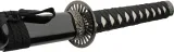 37" (93.98cm) overall. 27" (68.58cm) satin finish stainless blade. Black cord wrapped handle. Metal alloy guard. Black wood scabbard. Boxed.