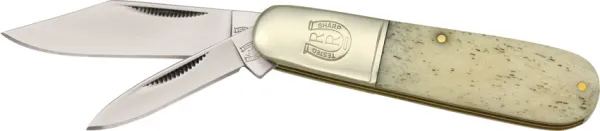 $18.95$12.72Rough Rider RR198 Item Description:Rough Rider Barlow. White Smooth Bone. 3 3/8 closed. Stainless clip and pen blades. White smooth bone handles with nickel silver bolster stamped with "Tested Sharp" Horseshoe logo." 3.38" closed. Stainless clip and pen blades. White smooth bone handle. Nickel silver bolster(s). Boxed.