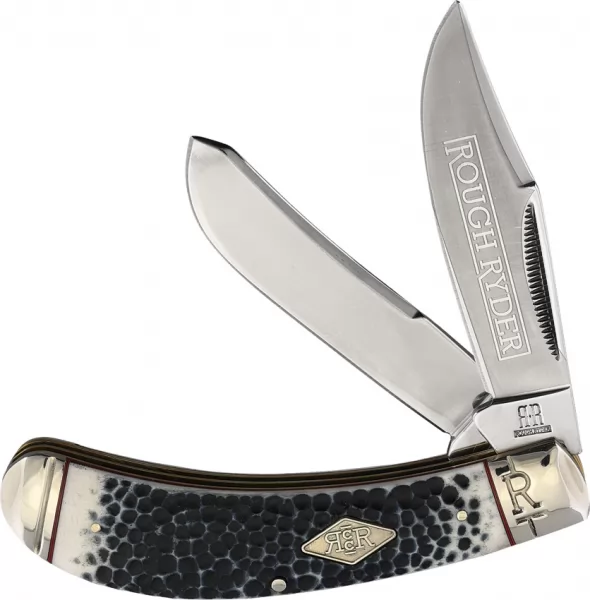 Rough Rider RR2322 Item Description:The Rough Rider BRK-RR2322 Buckshot Bone Bow Trapper showcases a handsome design featuring jigged bone scales, reminiscent of classic pocket knives favored by outdoorsmen. This Trapper model offers two high-carbon stainless steel blades ready for various cutting tasks, held securely in place with robust construction. The nickel silver bolsters and brass liners add durability and a touch of refinement. A perfect addition to any knife collection or a reliable tool for everyday carry, the Buckshot Bone Bow Trapper embodies the heritage of Rough Rider knives.