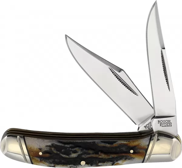 Rough Rider's BRK-RR2422 Copperhead Cinnamon offers a classic design with modern appeal. This knife showcases a striking cinnamon bone handle paired with durable, high-carbon stainless steel blades. Appreciate the smooth action and secure lockup, making it a reliable companion for everyday carry. The Copperhead Cinnamon provides exceptional value and enduring quality for collectors and users alike. A timeless addition to any collection. Cinnamon Bone Stag 3.75" (9.53cm) closed. Mirror finish carbon steel clip and skinner blades. Cinnamon stag bone handle. Nickel silver bolster(s). Boxed.