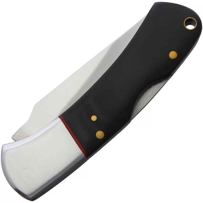 4" (10.16cm) closed. 3" (7.62cm) satin finish stainless clip point blade. Black micarta handle. Stainless bolster(s). Lanyard hole. Boxed.