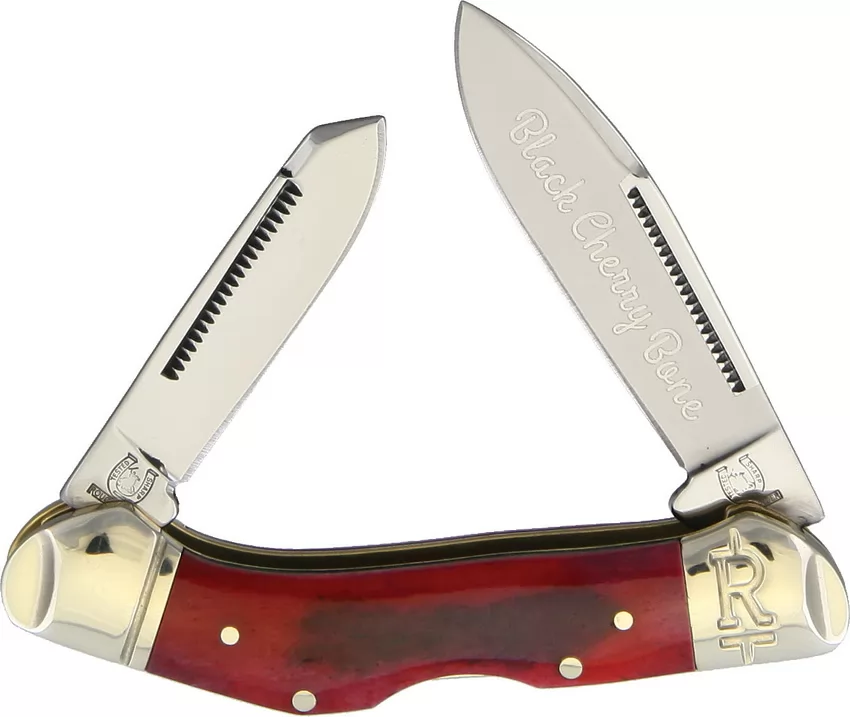 Black Cherry Bone Series. 3" closed. Stainless spear and spey blades. Black Cherry smooth bone handle. Nickel silver bolster(s). Blade etching. Boxed.