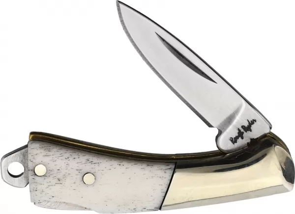 The Rough Rider Mini Lockback White Bone (BRK-RR2458) offers a classic, compact design for everyday carry. This knife features a stainless steel blade that secures firmly with a lockback mechanism. The handle is crafted with smooth, white bone scales, providing a comfortable and handsome grip. This pocket-sized tool is perfect for various cutting tasks and showcases Rough Rider's dedication to quality and value. 1.5" (3.81cm) closed. 1" (2.54cm) mirror finish stainless blade. White smooth bone handle. Nickel silver bolster(s). Keyring. Boxed.