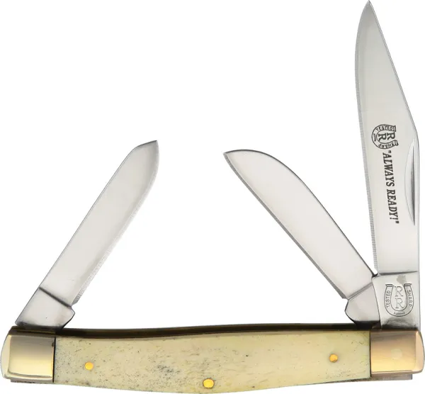 The Rough Rider Stockman White Smooth Bone RR248 knife offers a classic design with practical functionality. Featuring durable stainless steel blades, including a clip point, sheepsfoot, and spey blade, this knife tackles a variety of cutting tasks. Its smooth white bone handle provides a comfortable and secure grip, complemented by nickel silver bolsters for a touch of refinement. The Stockman configuration makes it an ideal everyday carry option for collectors and users alike. 3.25" closed. Stainless clip, spey, and sheepsfoot blades. White smooth bone handle. Nickel silver bolster(s). Boxed.
