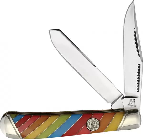 $27.95$18.69Rough Rider RR2463 Item Description:The Rough Rider BRK-RR2463 Trapper Lollipop provides a vibrant twist on a classic pocketknife design. Featuring smooth, durable acrylic handles in a striking "lollipop" swirl, this Trapper knife delivers reliable cutting performance with its dual stainless steel blades. Well-suited for everyday tasks, the BRK-RR2463 offers traditional craftsmanship in a unique and eye-catching package, making it both a practical tool and a conversation piece. Add this colorful and capable knife to your collection.