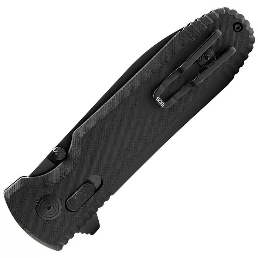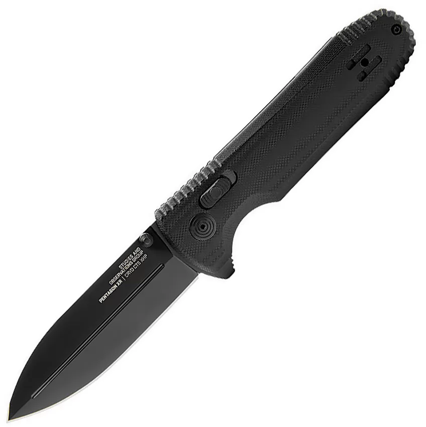 $230.95$174.95SOG SOG12610157 Item Description:SOG knives' Pentagon XR Lock Blackout (BRK-SOG12610157) offers unparalleled strength and security. This knife features SOG's innovative XR Lock mechanism for ambidextrous, smooth, and reliable deployment and secure blade lockup. The CPM S35VN steel blade delivers exceptional edge retention and corrosion resistance, while the black G10 handle provides a confident grip in any condition. Perfect for tactical applications or everyday carry, the Pentagon XR Lock Blackout ensures dependable performance when you need it most.
