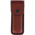 Old Timer. 4.13" (10.49cm) closed. Satin finish stainless clip and saw blades. Brown sawcut Delrin handle. Nickel silver bolster(s). Inlay shield. Field pick and tweezers. Boxed with hanging tab.
