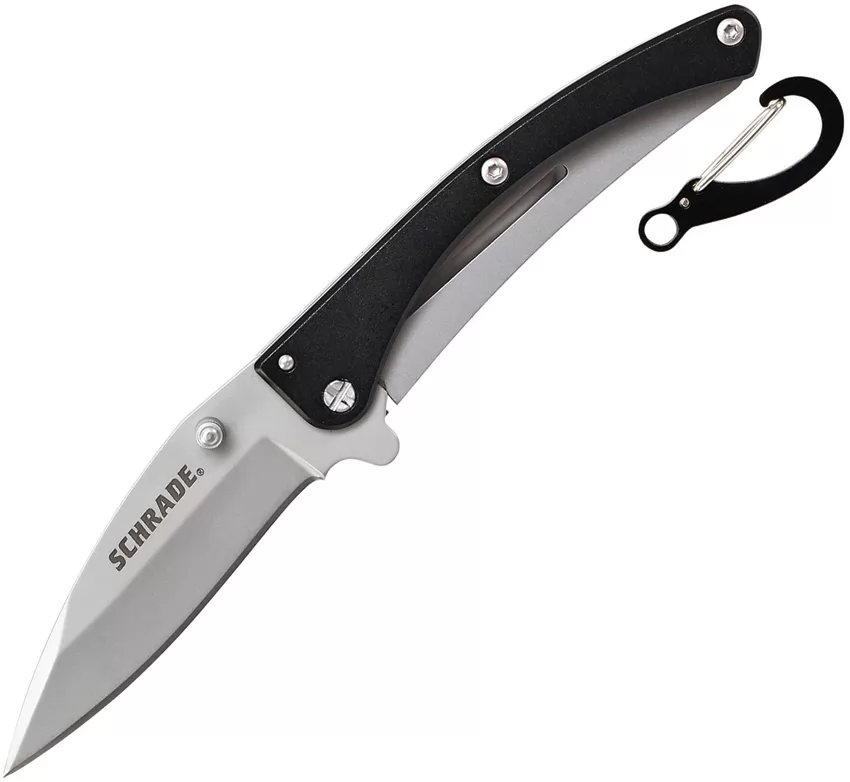Schrade Pocket Protector Framelock Blk knives SCH222BKCP on sale now for $5.37. UPC code 044356226394.