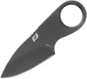 3.5" (8.89cm) overall. 1.75" (4.45cm) gray TiNi coated AUS-10A stainless drop point blade. One-piece construction. Finger ring. Black injection molded sheath.