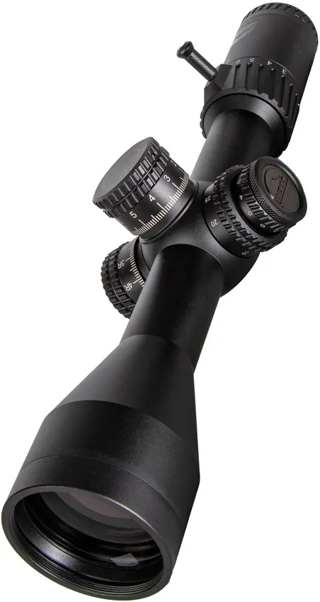 LR2 reticle. Shockproof. Waterproof. Fogproof. Coated optics. 6:1 zoom ratio. Exposed, tactical high turrets. Zero stop elevation dial. First focal plane, red-illuminated reticle. Single piece, 30mm tube. Aluminum construction. Color: Black. Boxed.