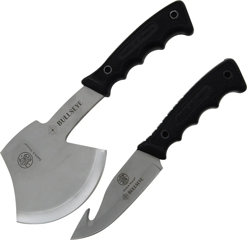 $70.95$42.10Smith & Wesson SW629 Item Description:S&W Knife Axe Combo. Axe measures 10 3/4 overall. 440C stainless axe head with a 4 1/2" cutting edge. Also includes a 9 1/4" overall fixed blade hunter with a 4 1/2" 440C stainless guthook blade. Both have black rubber handle and store in a black cordura belt sheath." Axe measures 10 3/4" overall. 440C stainless axe head with a 4 1/2" cutting edge. Also includes a 9 1/4" overall fixed blade hunter with a 4 1/2" 440C stainless guthook blade. Both have a black rubber handle and store in a black cordura belt sheath.