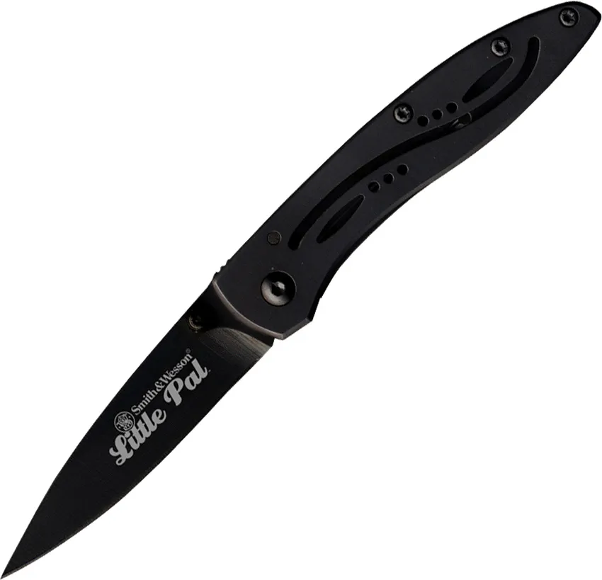 $13.95$8.32Smith & Wesson SWLPB Item Description:S&W Little Pal Framelock Black 3 closed. Black titanium powder coated 440C stainless drop point blade with ambidextrous thumb studs. Black finish skeletonized stainless handles." Black titanium powder coated blade and handles. 3" closed framelock. 440C stainless drop point blade with ambidextrous thumb studs. Skeletonized stainless handles.