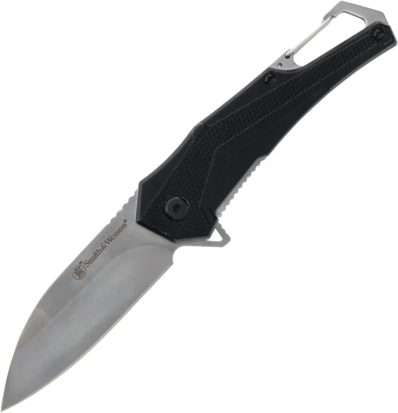 $19.99$15.05Smith & Wesson SW1208418 Item Description:The Smith & Wesson Oasis BRK-SW1208418 offers a reliable everyday carry solution with a durable linerlock mechanism and integrated carabiner clip for secure attachment to gear or clothing. Crafted with quality materials, this model features a partially serrated stainless steel blade ideal for various cutting tasks. Its ergonomic handle provides a comfortable and secure grip, ensuring confident handling. The Oasis is a practical and versatile tool for outdoor adventures, everyday tasks, or emergency situations.