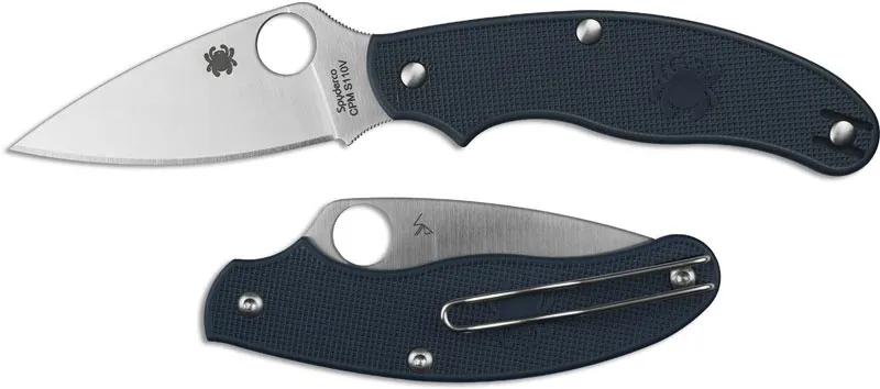 $185.00$138.75Spyderco C94PDBL Item Description:Spyderco C94PDBL UK Penknife -Dark Blue. This knife was made to help conform to strict restrictive knife laws in England that prohibited the carry of one-hand-opening lock-blade knives. This has a one-hand opening with a socially friendly notch-joint mechanism that helps hold the blade safely open during use, but does not mechanically lock it- therefore no locking system. A dark midnight blue textured handle FRN-(fiberglass-reinforced-nylon) to help secure your grip during use. Handle measures as 3.95 inches. Blade has the Sypderco signature round hole to open blade manually. Blade measuring 2.63 inches and is made with CPM S110V steel in Golden Colorado, USA. Manual style closing. Deep-pocket, reversible wire pocket clip can be changed from left to right in a tip up position. Weighs 1.7 ounces.