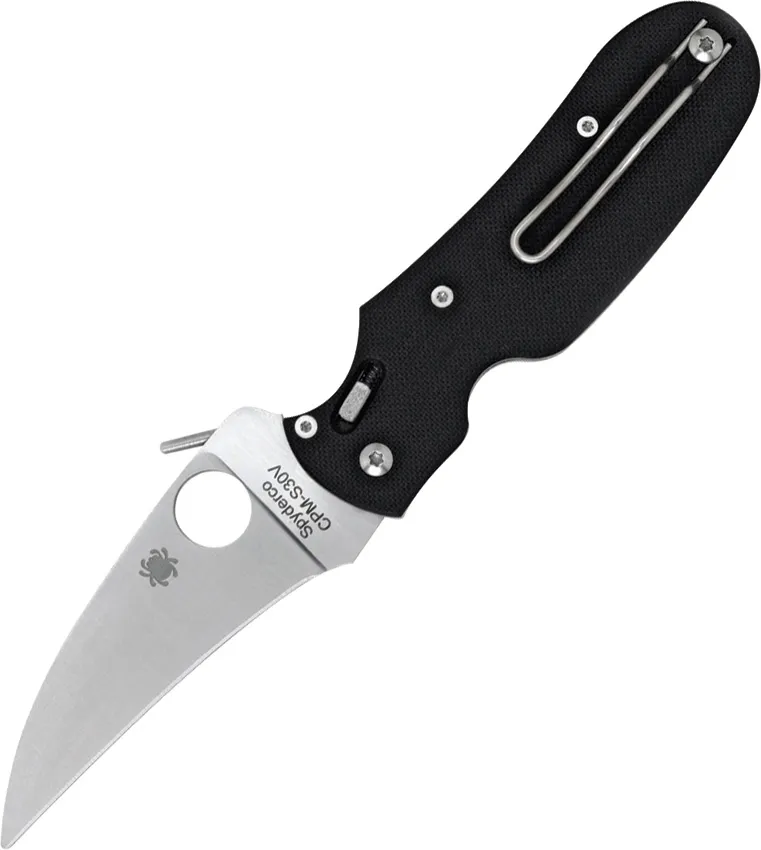 The Spyderco ball bearing lock is positioned above and behind the blade. It is housed in a plastic cover which can be accessed whether you adopt a left handed or right handed grip. Finally, a handy metal steel wire pocket clip is included that allows tip up carrying.