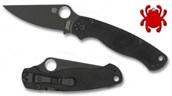 $285.00$213.75Spyderco C81GPBK2 Item Description:Spyderco Para-Military 2 Knife C81GPBK2. Spyderco has amazed us again- yet this time with a black blade. The Para Military is widely sought after for it's unique curves in the blade and handle. Spyderco put the CPM S30V steel in this blade that measures 3.25 inches long. There is a finger hole on top to help open and close the blade. The handle has the G-10 scales to help provide a more secure grip. There is a lanyard hold on the end and a black pocket clip on the back. This was made in Golden, Colorado- right here in the USA. Overall length is 8.25 inches. What a work of excellence! 4.75" (12.07cm) closed. 3.5" (8.89cm) black finish S45VN stainless blade. Black textured G10 handle. Thumb pull. Pocket clip. Lanyard hole. Boxed.
