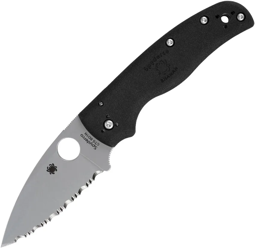 Spyderco Shaman Lightwt Compres Lock knives SC229SBK on sale now for $180.00. UPC code 716104019946. There are 8 in stock. Made in USA.