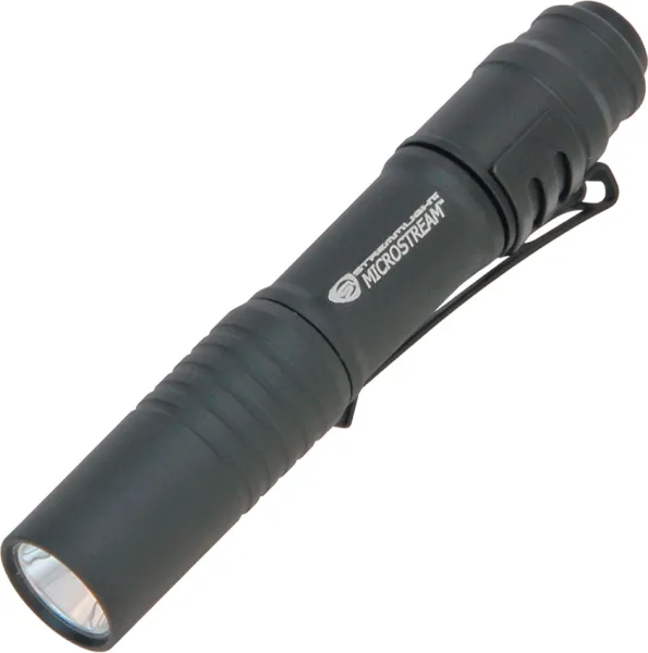 $38.89$26.59Streamlight STR66318 Item Description:Streamlight MicroStream Stylus 3 1/2 overall. Black aircraft aluminum construction with pocket clip. High-flux LED with micro optical system. Up to 20 lumen output. Tailcap switch. Uses 1 AAA battery (included). Up to 1 1/2 hours burn time per battery. Keyring. Hang packaged with "Break Away" safety lanyard." 3.5" overall. Clip. Lanyard. Tailcap switch. Keychain. C4 LED with micro optical system. Up to 45 lumen output. Up to 2 hour burn time per battery. Requires (1) AAA battery (included). Aluminum construction. Color: Black. Hang packaged.