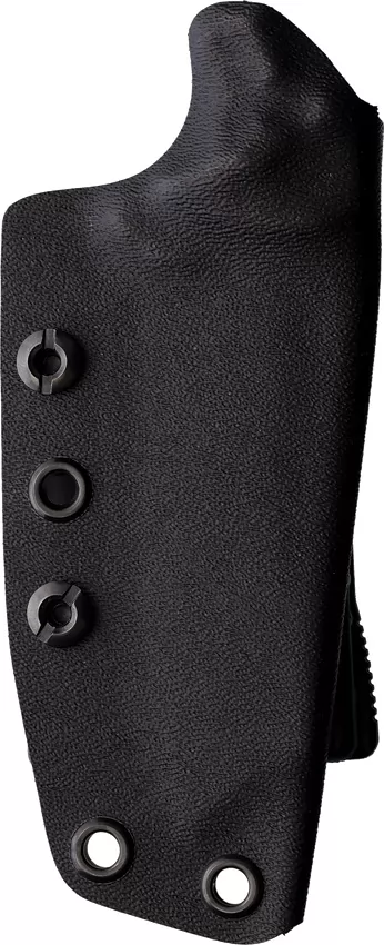 8.5" (21.59cm) overall. 3.75" (9.53cm) 1095HC steel blade. Black sculpted G10 handle. Full, extended tang. Lanyard hole. Rock tumbled and acid etched blade. Black Kydex belt sheath. Boxed.