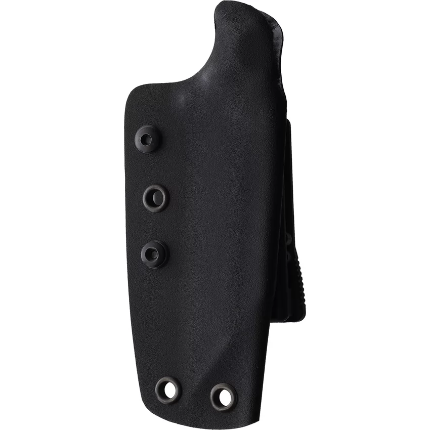 8.25" (20.96cm) overall. 4" (10.16cm) 1095HC steel blade. OD green sculpted G10 handle. Full tang. Lanyard hole. Stroup Knives are forged and may have "forge scale discoloration" in their finish. Black Kydex belt sheath. Boxed.
