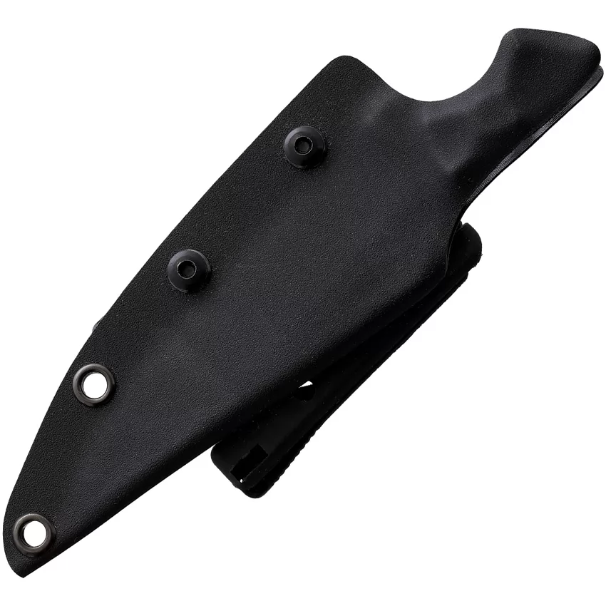 8.75" (22.23cm) overall. 4.5" (11.43cm) 1095HC steel blade. Black sculpted G10 handle. Lanyard hole. Full tang. Rock tumbled and acid etched blade. Stroup Knives are forged and may have "forge scale discoloration" in their finish. Black Kydex belt sheath. Boxed.