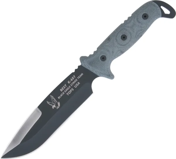 $304.95$190.63TOPS TP5020HP Item Description:Tops B.E.S.T. 12 1/4 overall. 7" black traction coated 1095 high carbon steel blade with false edge. Full tang. Black linen micarta handles. Black ballistic nylon sheath with Kydex liner.
