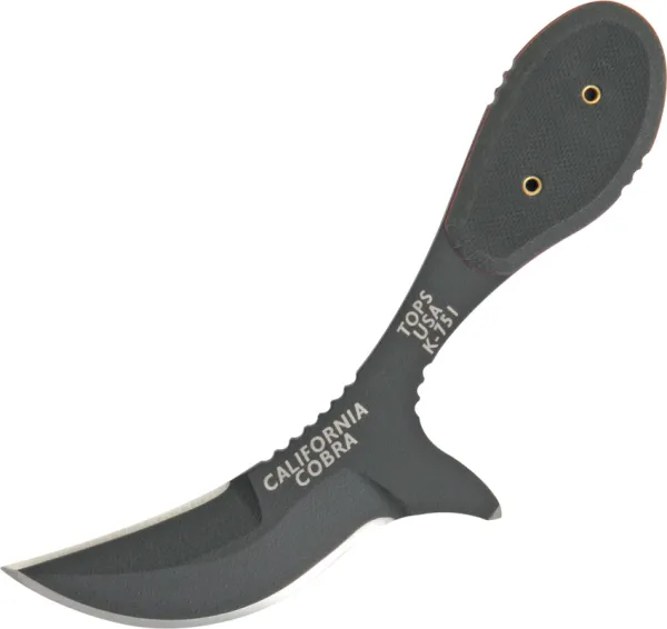$199.95$125.00TOPS TPCALCO01 Item Description:Tops California Cobra. 5 7/8 overall. 2 1/2" black traction coated 1095 high carbon steel blade. Full tang. Black G-10 handles. Black Kydex sheath.