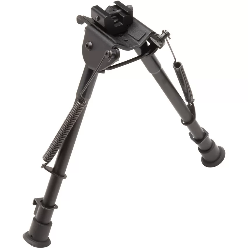 Adjustable from 9" to 13" with 0.5" increments. Lightweight and compact with quick deployment. Great for bench or prone shooting. Spring assisted design. Padded, rubberized feet. Fixed base for solid mounting. Mounts to sling swivel or Picatinny rail. Clam packed.