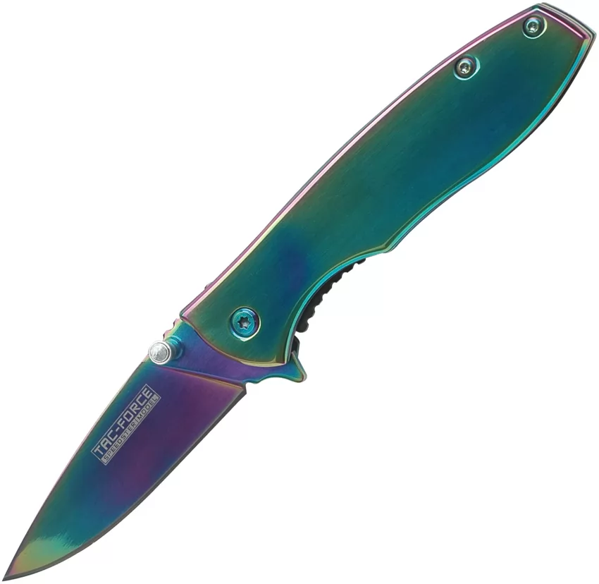 Assisted opening. 3.88" (9.86cm) closed. 2.75" (6.99cm) spectrum TiNi coated 3Cr13 stainless drop point blade. Spectrum TiNi finish stainless handle. Extended tang. Thumb stud. Pocket clip. Boxed.