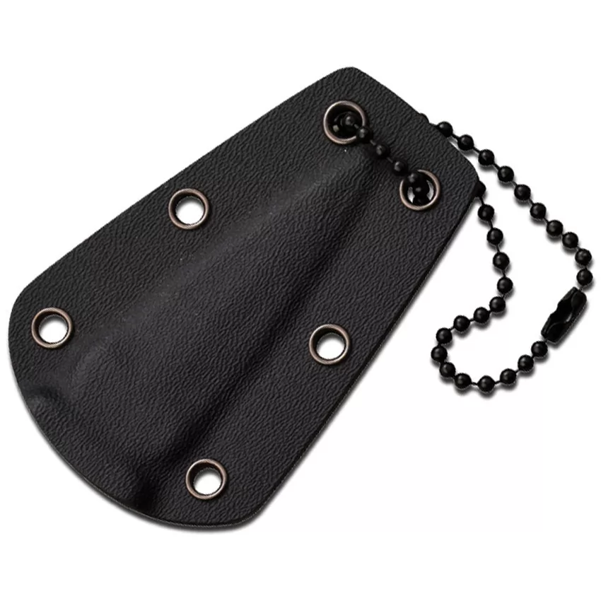 4.75" (12.07cm) overall. 2" (5.08cm) satin finish double edge stainless blade. Stainless handle. Full tang. American flag handle embellishment. Black Kydex neck sheath. Boxed.
