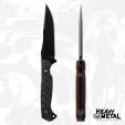 8" (20.32cm) overall. 4" (10.16cm) black Gun-Kote finish CPM-M4 stainless blade. Carbon fiber and sanguis red G10 handle. Limited edition. Black Tru-Hide Kydex belt sheath. This Item may only be EXPORTED. It may NOT be sold to customers within the United States. Boxed.
