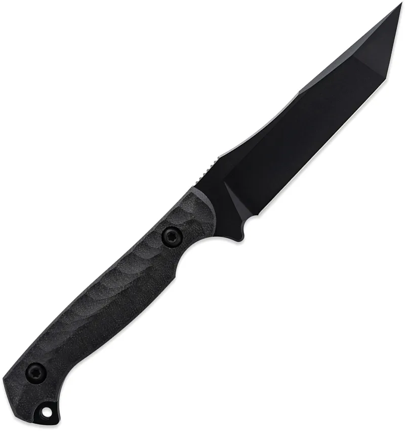 8" (20.32cm) overall. 4" (10.16cm) black Gun-Kote finish CPM-M4 stainless blade. Black sculpted G10 handle. Full, extended tang. Lanyard hole. Black Tru-Hide Kydex belt sheath. This Item may only be EXPORTED. It may NOT be sold to customers within the United States. Boxed.