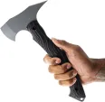 11" overall. 5.75" gray Gun-Kote finish D2 tool steel axe head with 2.75" cutting edge. Black sculpted G10 handle. Full, extended tang. Lanyard hole. This Item may only be EXPORTED. It may NOT be sold to customers within the United States. Black Kydex belt sheath. Boxed.