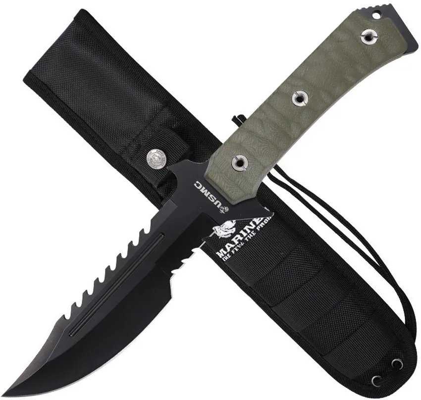 $56.95$32.08USMC USMFIX3006GN Item Description:The USMC knives BRK-USMFIX3006GN Fixed Blade Green is a rugged, dependable tool built to tackle tough tasks. This knife features a durable fixed blade, ideal for a variety of outdoor and survival applications. Its ergonomic green handle ensures a secure and comfortable grip, even in demanding conditions. With its robust construction and practical design, the BRK-USMFIX3006GN delivers reliable performance you can count on. A genuine USMC knife, ready for action.