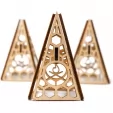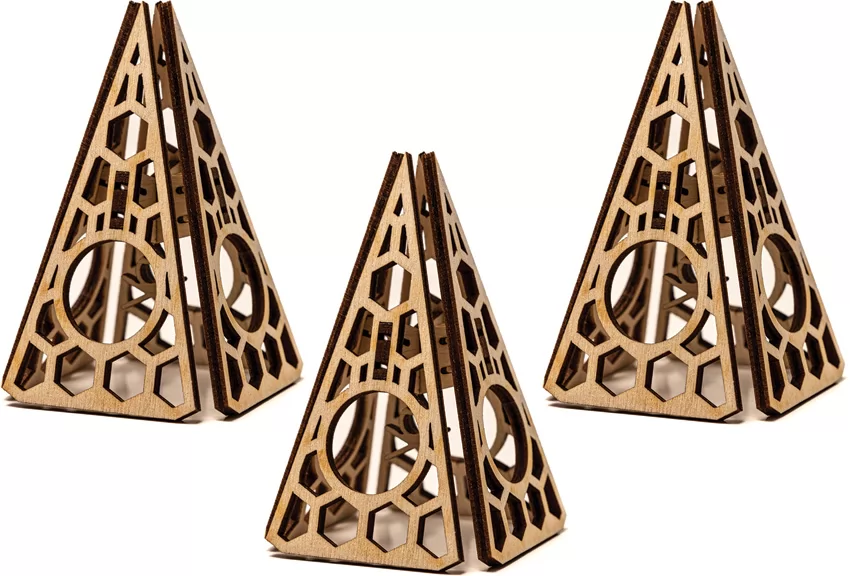 Dimensions: 3.4" x 2.2". Four-panel assembly. Made from Baltic birch. Three minute burn time. Includes three complete units. Boxed.