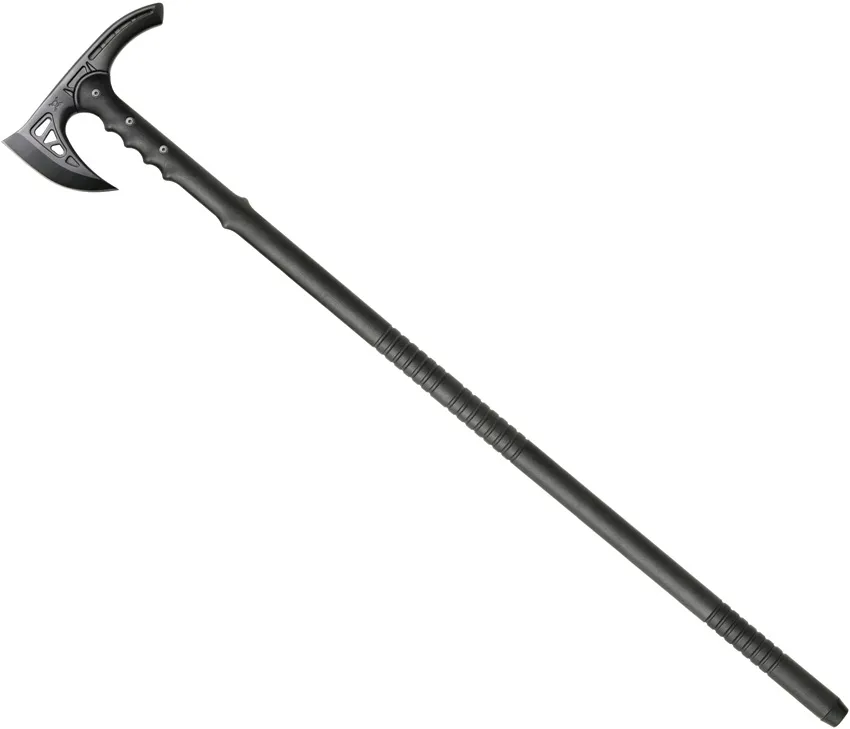 37" overall. 6.5" 2Cr13 stainless axe head with 4.5" cutting edge. Fiber-reinforced polymer handle. Snap-on rubberized blade cover. Boxed.