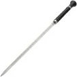 The Shikoto Yonaka Sword Cane by United Cutlery offers discreet self-defense with unparalleled craftsmanship. This expertly forged, high-carbon steel blade is seamlessly concealed within a sturdy black hardwood cane. The cane features a comfortable grip and provides reliable support, while the sword within, when needed, delivers formidable cutting power. Designed for both practicality and aesthetic appeal, the Yonaka Sword Cane is a sophisticated statement piece with functional purpose. Model BRK-UC3472. 37.13" (94.31cm) overall. 18.25" (46.36cm) carbon steel blade. Blade that can be pulled from the shaft with integrated release button. Black wooden knob handle with leather-wrapped grip above a wooden shaft with a rubber toe. Boxed.