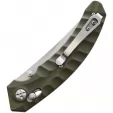 5" (12.7cm) closed. 3.75" (9.53cm) stonewash and satin finish 8Cr13MoV stainless clip point blade. Green sculpted G10 handle. Thumb stud. Pocket clip. Boxed.