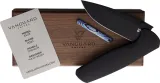4.5" (11.43cm) closed. 3.75" (9.53cm) black coated Bohler M390 stainless blade. Black textured titanium handle. Thumb stud. Pocket clip. Extra Timascus pocket clip. Wooden gift box.