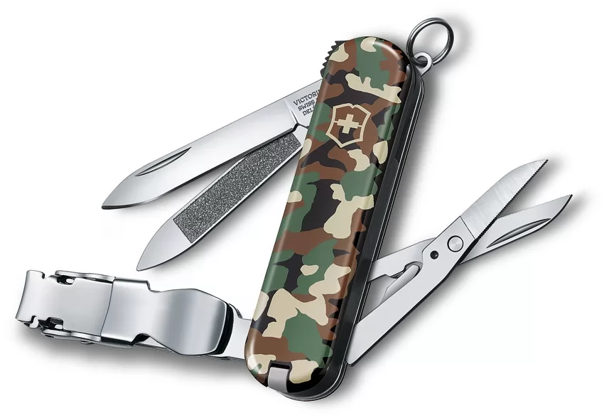 Victorinox VN0646394X1 Item Description:The Victorinox Nail Clip 580 Camo (BRK-VN0646394X1) packs essential grooming tools into a compact, go-anywhere design. This pocket-sized companion boasts durable construction and a camouflage pattern that blends seamlessly with your active lifestyle. It features a sharp nail clipper, small blade, nail file with nail cleaner, keyring, and scissors to keep your nails and small tasks in check, whether you're at home or on the trail. Enjoy the precision and reliability you expect from Victorinox in this convenient, multi-functional tool.