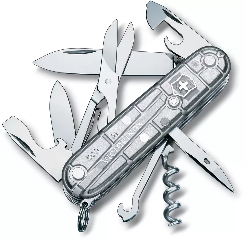 Victorinox VN13703T7033X1 Item Description:The Victorinox Silver Tech Climber BRK-VN13703T7033X1 is your reliable companion for everyday adventures. This iconic Swiss Army knife, featuring durable silver tech scales, packs 14 essential functions into a compact design. Tackle tasks with precision using the large and small blades, corkscrew, can opener, screwdriver, and more. The Climber also includes scissors and a multi-purpose hook, making it invaluable for campers, hikers, and anyone seeking preparedness in a sleek, pocket-sized tool.