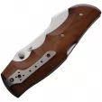 5.75" (14.61cm) closed. 4.25" (10.8cm) satin finish Elmax steel blade. Finger grooved wood handle. Thumb stud. Pocket clip. Boxed.