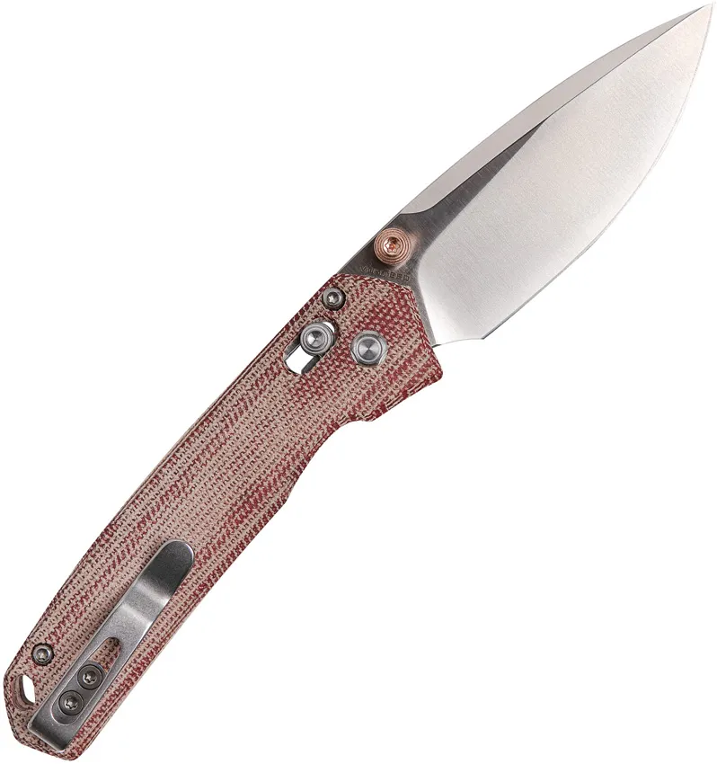 The Vosteed Mini Psyop Crossbar Lock Red (BRK-VOSA2306) delivers exceptional strength and ambidextrous functionality in a compact package. This knife features a robust crossbar locking mechanism for secure blade deployment and rock-solid lockup, coupled with vibrant red aluminum handle scales for enhanced grip and visual appeal. Carry the Mini Psyop comfortably thanks to its deep-carry pocket clip, while enjoying effortless one-handed operation for everyday tasks. The knife's durable construction and thoughtful design make it a reliable companion for any adventure. 3.88" (9.86cm) closed. 2.75" (6.99cm) satin finish Elmax steel blade. Red Norplex UltreX micarta handle. Thumb stud. Lanyard hole. Pocket clip. Boxed.