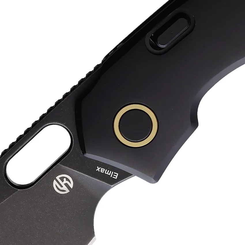 The Vosteed Psyop Top Linerlock Ti Black (BRK-VOSA2203) delivers peak performance with its robust titanium handle and sleek black finish. This exceptional knife boasts a smooth, reliable linerlock mechanism for secure blade engagement. Its meticulously crafted blade, made from high-quality steel, offers superb cutting capability and edge retention. The Psyop’s ergonomic design ensures comfortable handling, making it an ideal companion for everyday carry or outdoor adventures. A premium tool for those who appreciate precision and quality. 4.75" (12.07cm) closed. 3.25" (8.26cm) black stonewash finish Elmax steel drop point blade. Black titanium handle. Thumb pull. Lanyard hole. Pocket clip. Extended tang. Boxed.